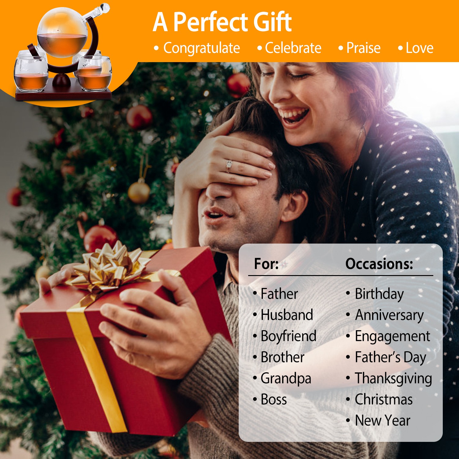 Home > Whiskey Decanter Globe Set w/ 4Pcs 8.45OZ Etched World Whiskey Glasses Wooden Tray Perfect Gift Set for Liquor Scotch Bourbon Vodka