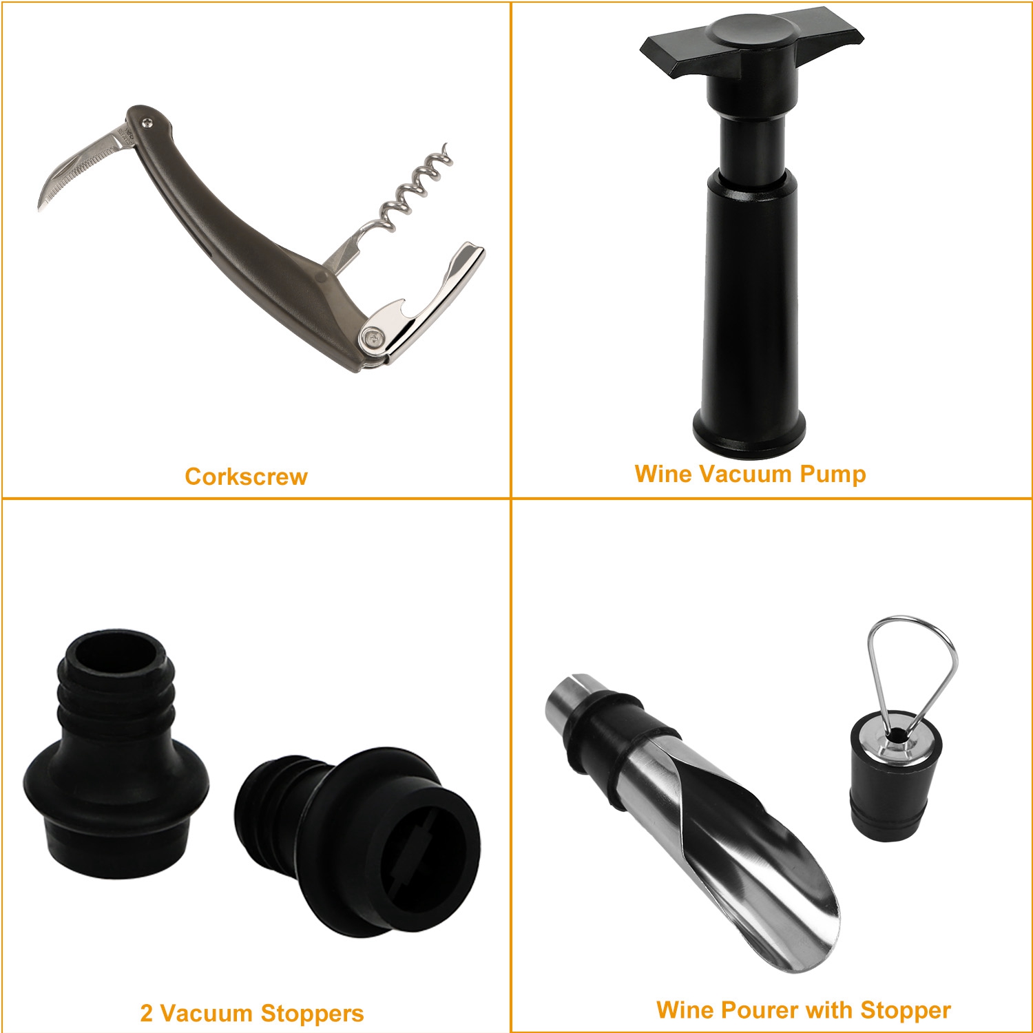 Home > 5 Pcs Wine Bottle Opener Set Wine Accessories Kit w/ Corkscrew Pourer Stopper Vacuum Pump for Home Use Sommeliers Waiters Bartenders